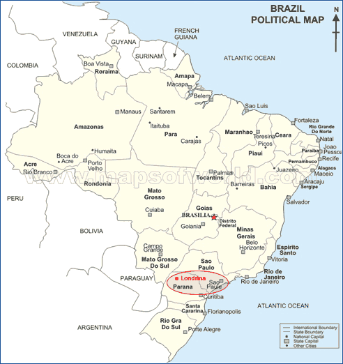 Map showing Londrina, Brazil